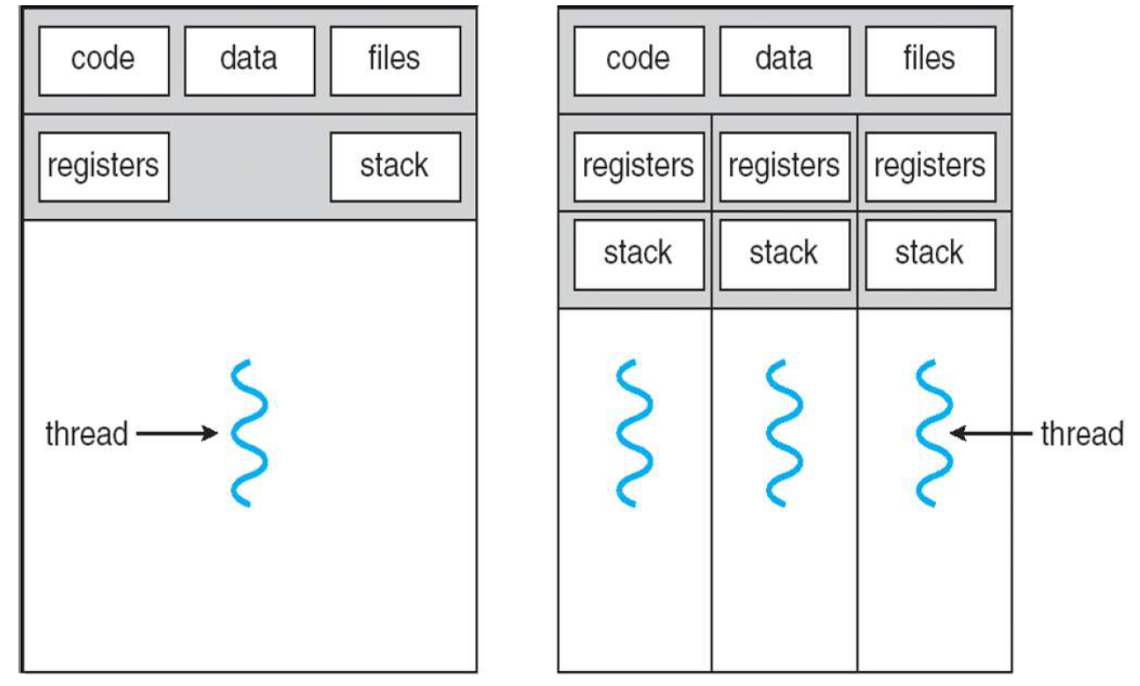 이런 점들은 throughput, responsiveness, resource sharing, economy, utilization 같은 부분들에서 훨씬 뛰어나기 때문에 이제는 thread를 통해 multiprogramming을 하는 경우가 대부분이다.